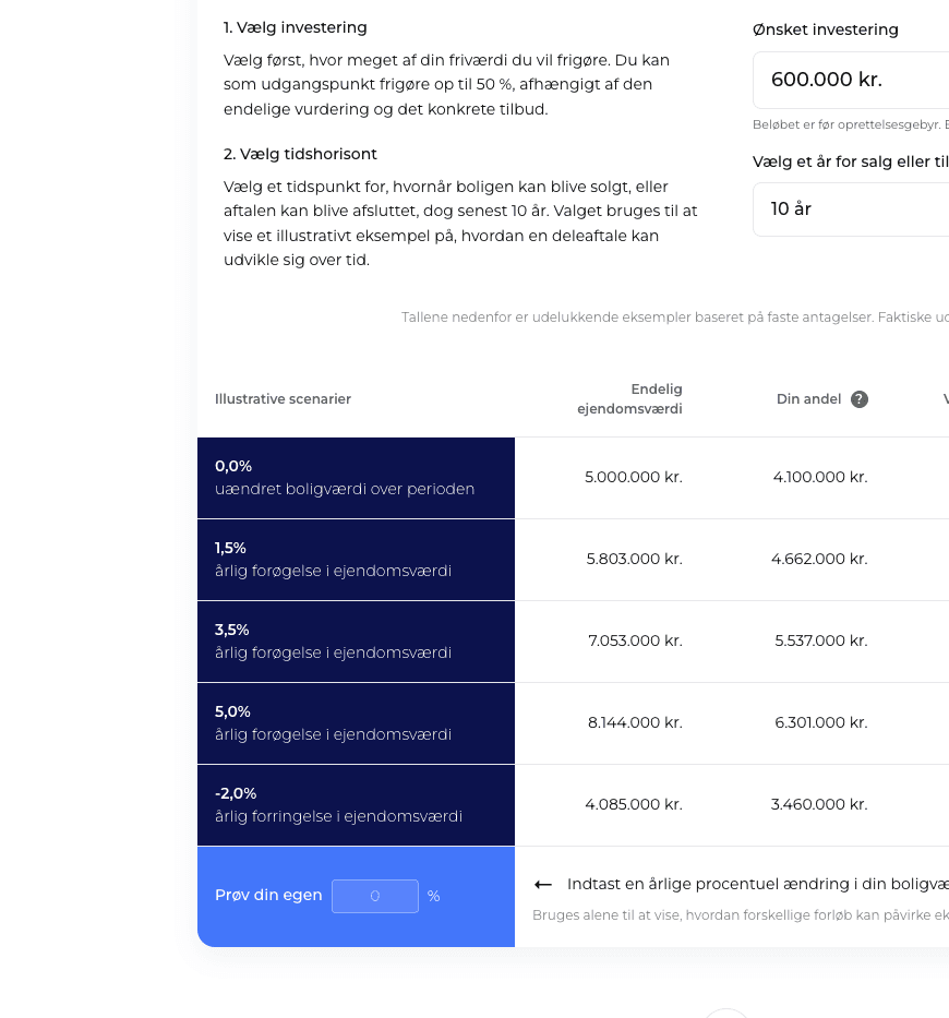 Med en deleaftale får du en kontant udbetaling mod at Verdi får en andel af din boligs friværdi. Aftalen løber i op til 10 år, og du kan til enhver tid indfri Verdis andel.